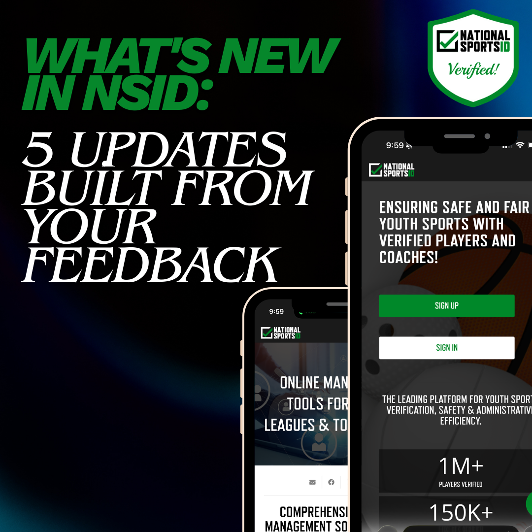 administrative efficiency, attendance tracking, automated scheduling, calendar management, coaching tools, competitive integrity, digital waivers, document automation, e-signature, league management software, league scheduling, new features, NSID updates, parent communication, player packets, product updates, sports administration, sports forms, sports organization tools, sports safety, sports scheduling software, sports verification, team communication, team scheduling, tournament management, youth athletics, youth sports management, Youth Sports Technology